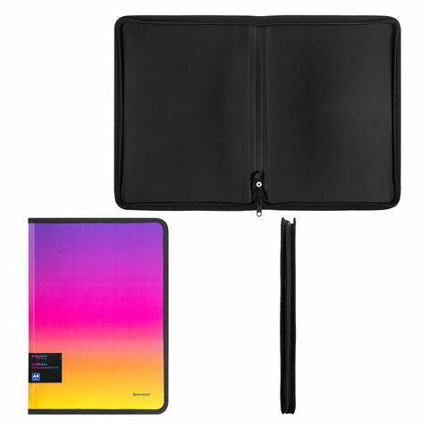 Папка объемная на молнии пластиковая BRAUBERG "Grade", А4, 330х240 мм, 600 мкм, розово-голубой градиент, 271975