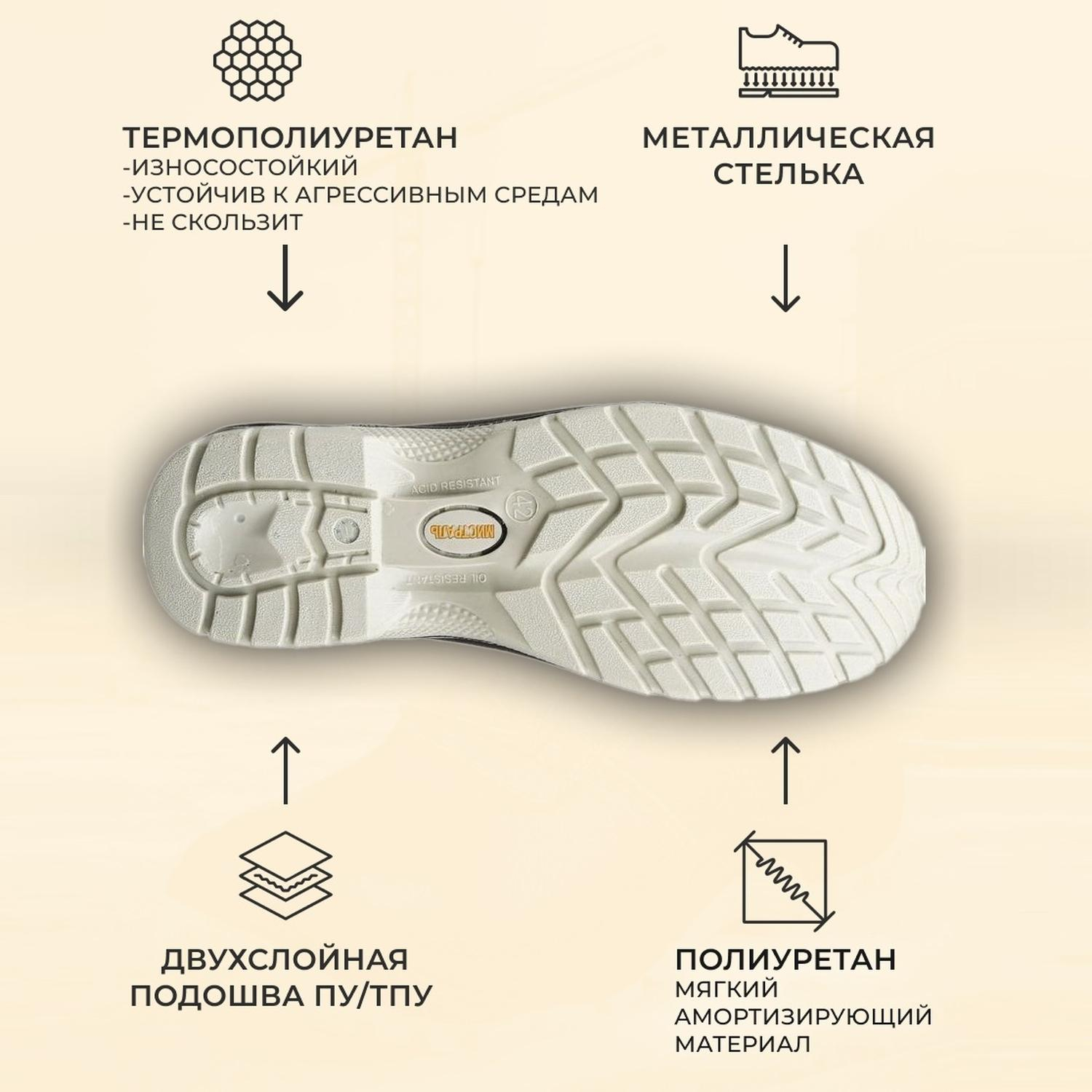 Полуботинки рабочие летние Мистраль Ultra ПУ-ТПУ натуральная кожа чёрные размер 45. Подходят для использования в нефтегазовой промышленности, тяжелой промышленности, логистике, а также в строительстве и озеленении территории/ЖКХ. Верх выполнен из натуральной кожи, которая обладает воздухопроницаемыми свойствами и предотвращает потоотделение. Обувь фиксируется на ноге с помощью шнурков, плотно обхватывающих стопу, что повышает комфорт при носке. В качестве подкладки используется современный материал «Типика» на нетканой основе, сетчатая структура которого эффективно отводит влагу и поддерживает гигиеничность.Композитный (поликарбонатный) подносок защищает от ударов силой до 200 Дж, снижая количество травм на производстве. Подошва из полиуретана с термополиуретаном (ПУ+ТПУ) устойчива к воздействию химических факторов: нефтяным продуктам, маслам, щелочам и кислотам. Она обладает отличными антискользящими свойствами, а также выдерживает температуры от −35 до +130 °C. Промежуточный слой из полиуретана придает легкость обуви, а ходовой слой из термополиуретана увеличивает срок службы за счет устойчивости к многократным изгибам, деформации и истиранию. Подошва крепится литьевым методом, что обеспечивает надежное и герметичное соединение слоев и высокую гибкость, снижая усталость ног.Антипрокольная стелька из металла защищает стопу и снижает количество травм на производстве.Гарантийный срок после выдачи обуви составляет 70 дней при соблюдении правил ухода, эксплуатации и хранения. Модель имеет защиту от механических повреждений, от ударов, от проколов, от общих производственных загрязнений, от нефти и нефтепродуктов, от кислот и щелочей, от скольжения.Соответствует стандартам ГОСТ 12.4.033-77, ГОСТ 12.4.137-2001, ГОСТ 12.4.177-89, ГОСТ 28507-99, ГОСТ Р 12.4.187-97, ТР ТС 019/2011.Цвет на изображении товара может отличаться от оригинала из-за особенностей цветопередачи монитора.