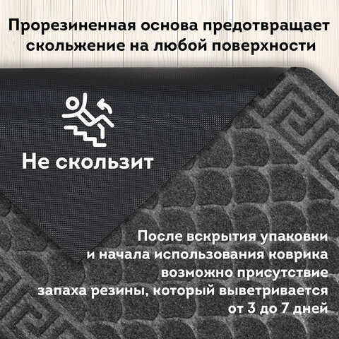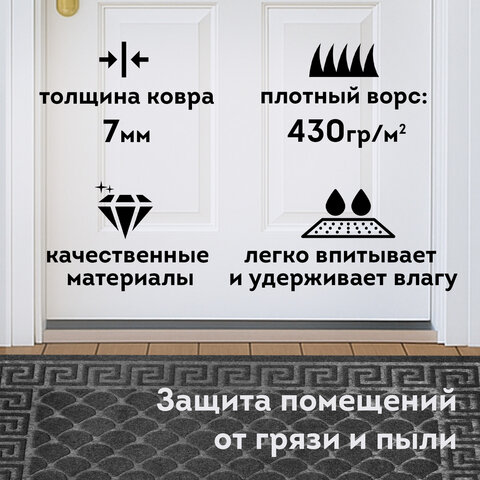 Коврик придверный 60х90 см, ЧЕРНЫЙ, грязезащитный, 430 г/м2, фактурный рисунок АЛМАЗ, ЛЮБАША, 701054