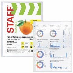 Перфорированные папки-файлы STAFF "ЭКОНОМ" обеспечивают сохранность бумажных носителей, защищают их от истирания, увлажнения, загрязнения, при этом обладают требуемыми параметрами прочности и прозрачности, позволяют систематизировать все важные документы.