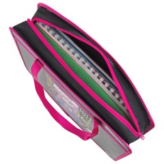 Размер папки – 330х260 мм, ширина – 80 мм. Широкий формат товара позволяет разместить большое количество канцелярских принадлежностей для творчества внутри, в том числе стакан-непроливайку. Папка имеет удобную застежку-молнию сверху. Прочные ручки с надежным креплением к папке, изготовленные из тесьмы, способствуют комфортной переноске при большой нагрузке.
