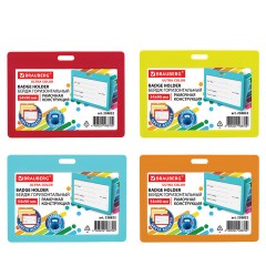 Бейдж-табличка горизонтальный (33х70 мм), с клипом и булавкой, BRAUBERG, 235723