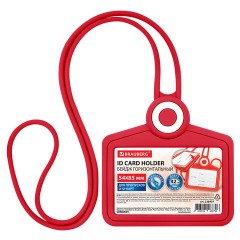 Бейдж школьника горизонтальный (55х90 мм), на ленте со съемным клипом, КРАСНЫЙ, BRAUBERG, 235762