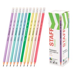Набор карандашей чернографитных с ластиком BRAUBERG "PASTEL" 12 шт., HB, 181997