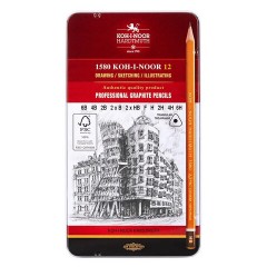 Набор карандашей ч/г Koh-I-Noor "1582" 12шт., 6B-6H, трехгранный, заточен., метал.пенал