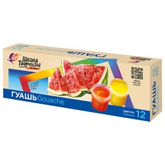 Гуашь художественная ГАММА "Студия", 12 цветов по 40 мл, картонная упаковка, 221029
