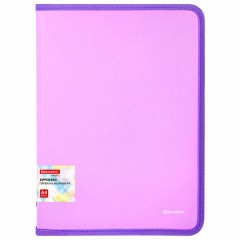 Папка объемная на молнии пластиковая BRAUBERG PASTEL, А4, 330х240 мм, 600 мкм, цвет лиловый, 271971