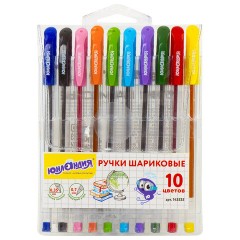 Ручки шариковые масляные ЮНЛАНДИЯ "КЛАССНАЯ", НАБОР 10 цветов, узел 0,7 мм, линия письма 0,35 мм, 143535